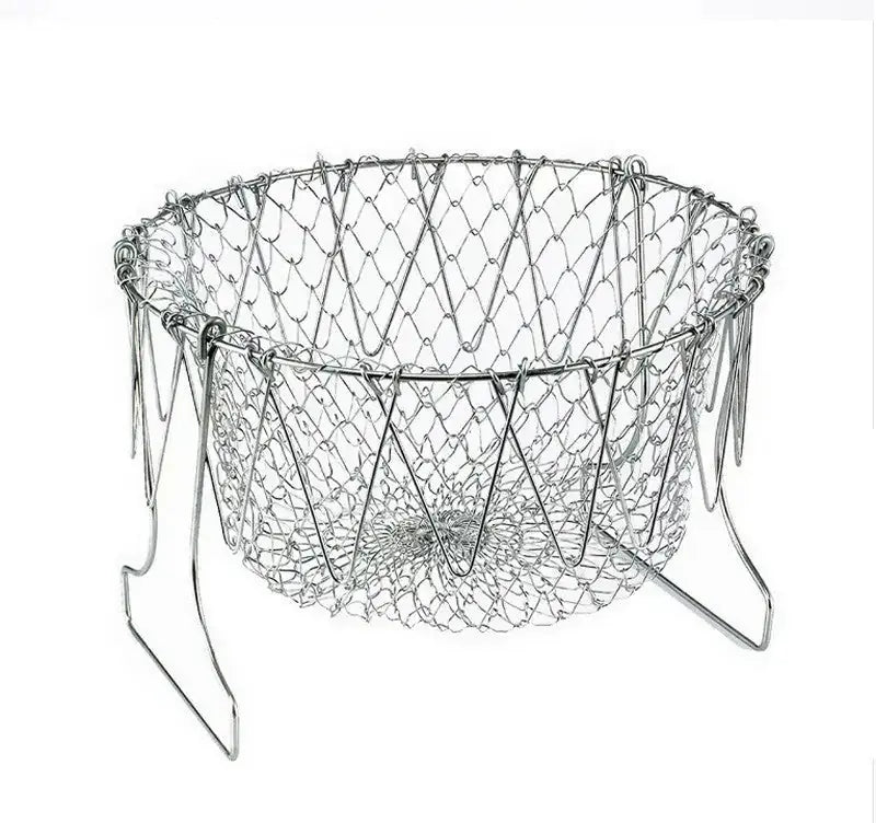 Deep Fry Basket Stainless Steel Multi-function Foldable Chef Cooking Basket Flexible Kitchen Tool for Fried Food Washing Fruits Vegetables